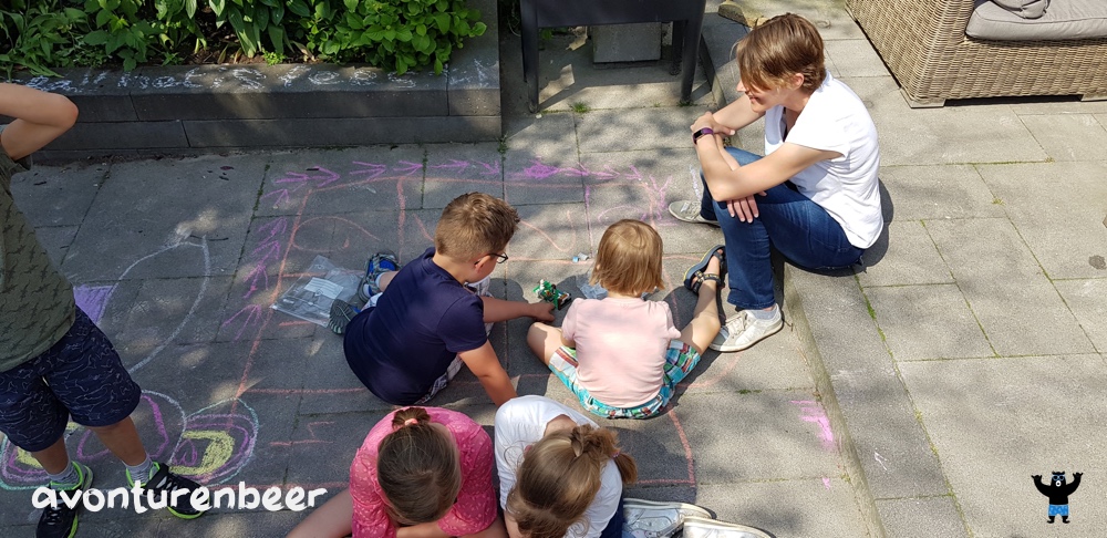 Zet een bak stoepkrijt neer en laat de kinderen lekker tekenen. Wil je het stoepkrijten aankleden, dan zijn hier een aantal voorbeelden: