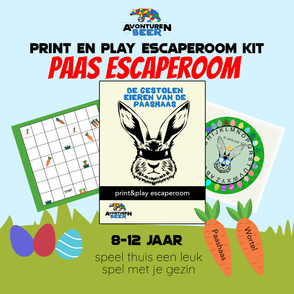 'De Gestolen Eieren van de Paashaas' is een print&play escaperoom voor thuis dat je tijdens de paasdagen speelt. Je speelt het spel met je gezin of met een groepje kinderen.